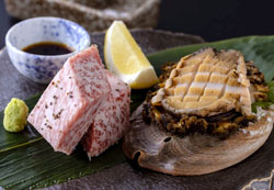 越前満月の和牛とアワビ |
