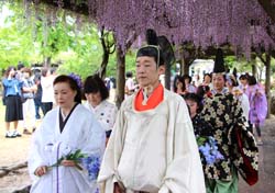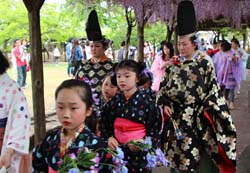 越前市 紫式部公園 式部とふじまつり、平安装束行列の様子 |