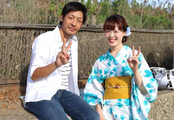 民宿の屋上にてお客様 |